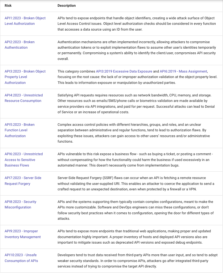 对象级别授权失败 (BOLA)、功能级别授权失败 (BFLA) 和安全配置错误是 2023 年列表中三个不变的 OWASP 十大 API 漏洞类别。他们在名单上的位置也保持不变。